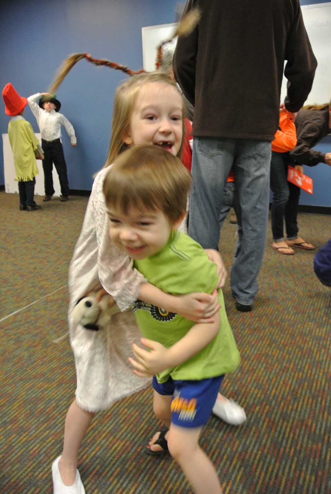 I love this photo. It's Lila, dressed as Cindy Lou Who, trying to force her brother to take a picture with her. He was clearly not interested, but she wasn't taking "no" for an answer. This was the best shot I got. By the third photo, they were both on the ground and she had him in a headlock! To make things even better, they were in the middle of Lila's classroom. At least they were doing it all with smiles on their faces.
